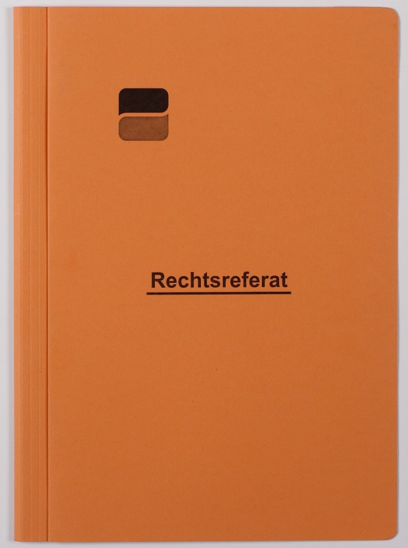 Sonstiges: im Vorderdeckel eingeklebte gerade Tasche, 110 mm tief, bedruckt, im Vorderdeckel unten angeklebte graue Fahne, 70 mm tief x 35 mm hoch, Vorder- und Rückendeckel je 4-fach gerillt |