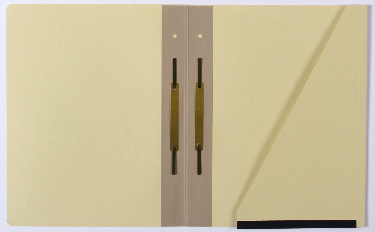 Abheftung: Innen mit 5er Trennblattsatz + dahinter 1 Heftfalz, Trennblätter und Heftfalz aus 250 g Karton gelb/fin, alle Abheftungen mit Metallheftgarnitur, Rechts